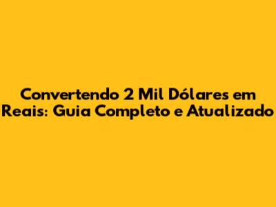 Convertendo 2 Mil Dólares Em Reais: Guia Completo E Atualizado