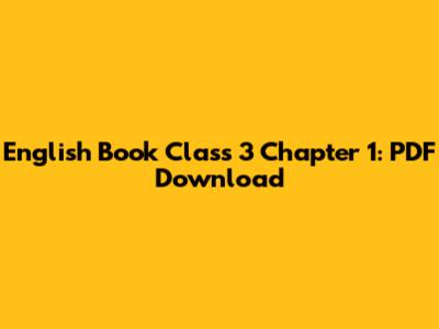 English Book Class 3 Chapter 1: PDF Download