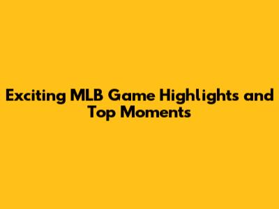 Exciting MLB Game Highlights And Top Moments
