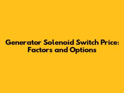 Generator Solenoid Switch: Price Factors & Options