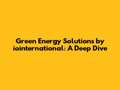 Green Energy Solutions By Iointernational: A Deep Dive