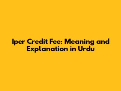 Iper Credit Fee: Meaning And Explanation In Urdu