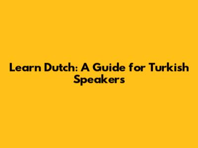 Learn Dutch: A Guide For Turkish Speakers