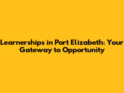 Learnerships In Port Elizabeth: Your Gateway To Opportunity