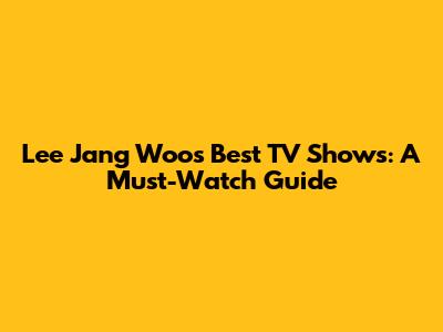 Lee Jang Woo's Best TV Shows: A Must-Watch Guide
