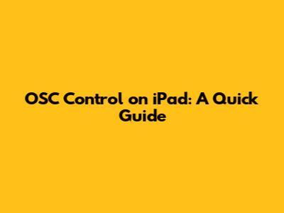 OSC Control On IPad: A Quick Guide
