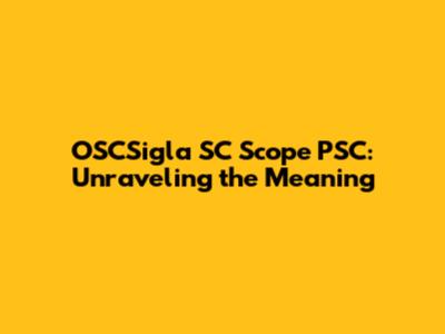 OSCSigla SC Scope PSC: Unraveling The Meaning