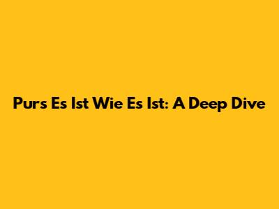Pur's Es Ist Wie Es Ist: A Deep Dive