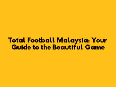 Total Football Malaysia: Your Guide To The Beautiful Game