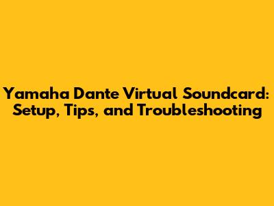 Yamaha Dante Virtual Soundcard: Setup, Tips, And Troubleshooting
